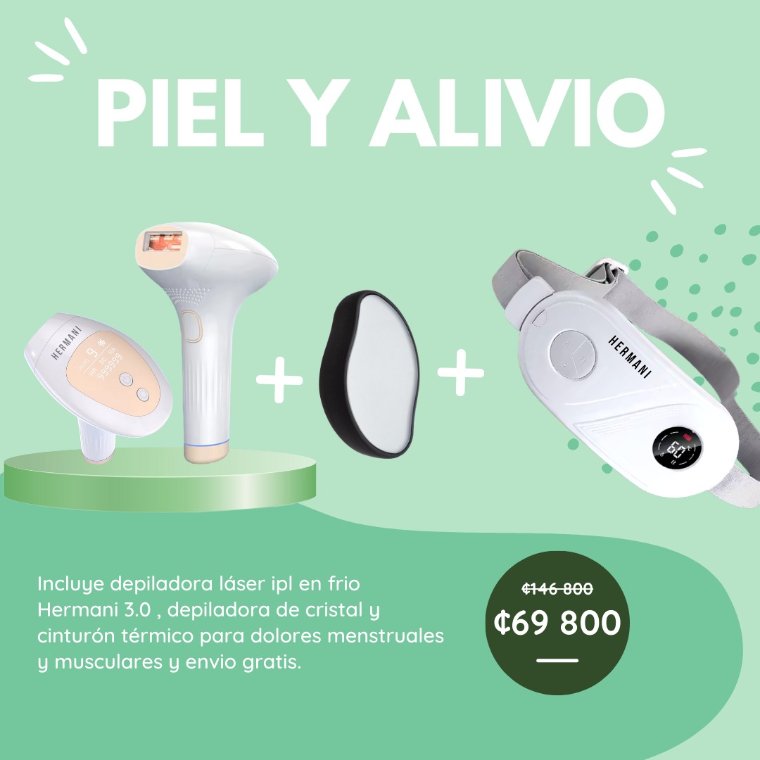 El Combo Incluye: Hermani IPL 3.0 + Cinturon Térmico para dolores menstruales + Depiladora de Cristal.